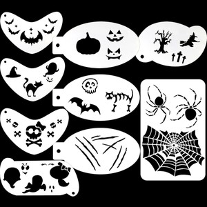 Halloween Face Paint Stencil Fun Pack Of 6 Spooky Designs Reusable Templates Ebay